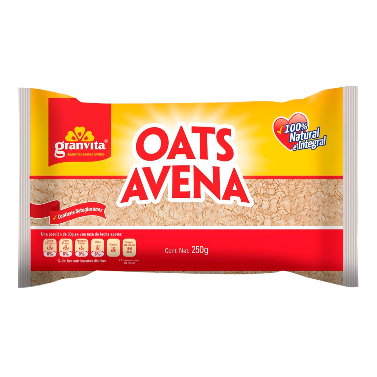Avena Granvita En Bolsa De 250 Gramos. Nutrimos Cada Momento 100% Hojuela De Avena Natural Alta En Fibra Granvita. Mejora La Digestión, Gran Fuente De Energía, Alimento Nutritivo Controla Los Niveles De Azúcar En Sangre.