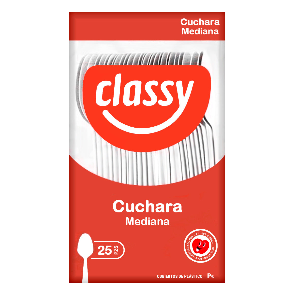 Cuchara Classy Mediana En Una Presentación De 25 Piezas Cubiertos Y Desechables Indispensables Para Tus Fiestas Y Reuniones. Fáciles De Usar Y Pueden Ser Reutilizados.