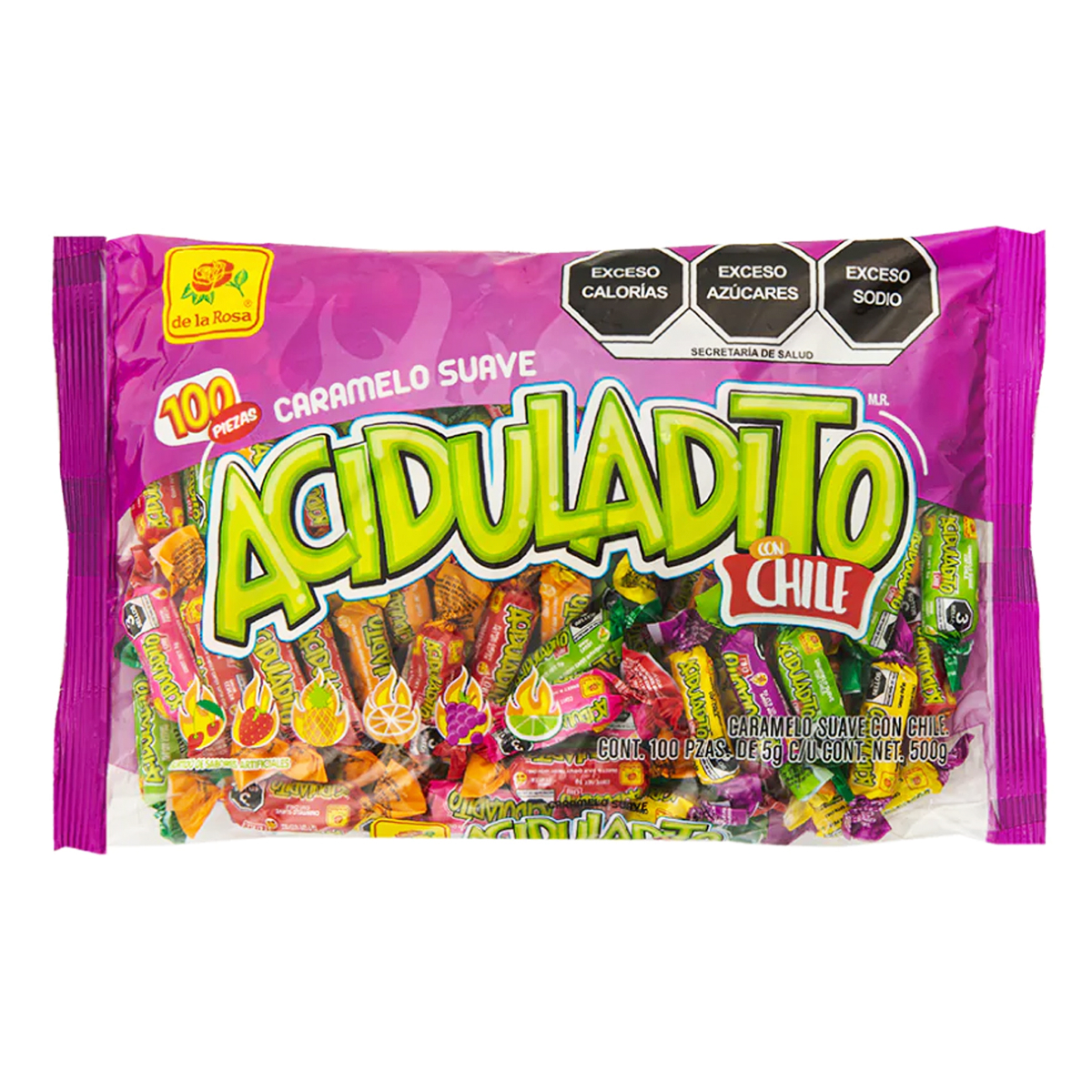 Caramelo La Rosa Acidulados Con Chile. En Una Presentación De 100 Piezas, Sabor Inigualable. Con La Calidad De Siempre. Sin Conservadores, Ni Colorantes Artificiales. Producto De Confitería.