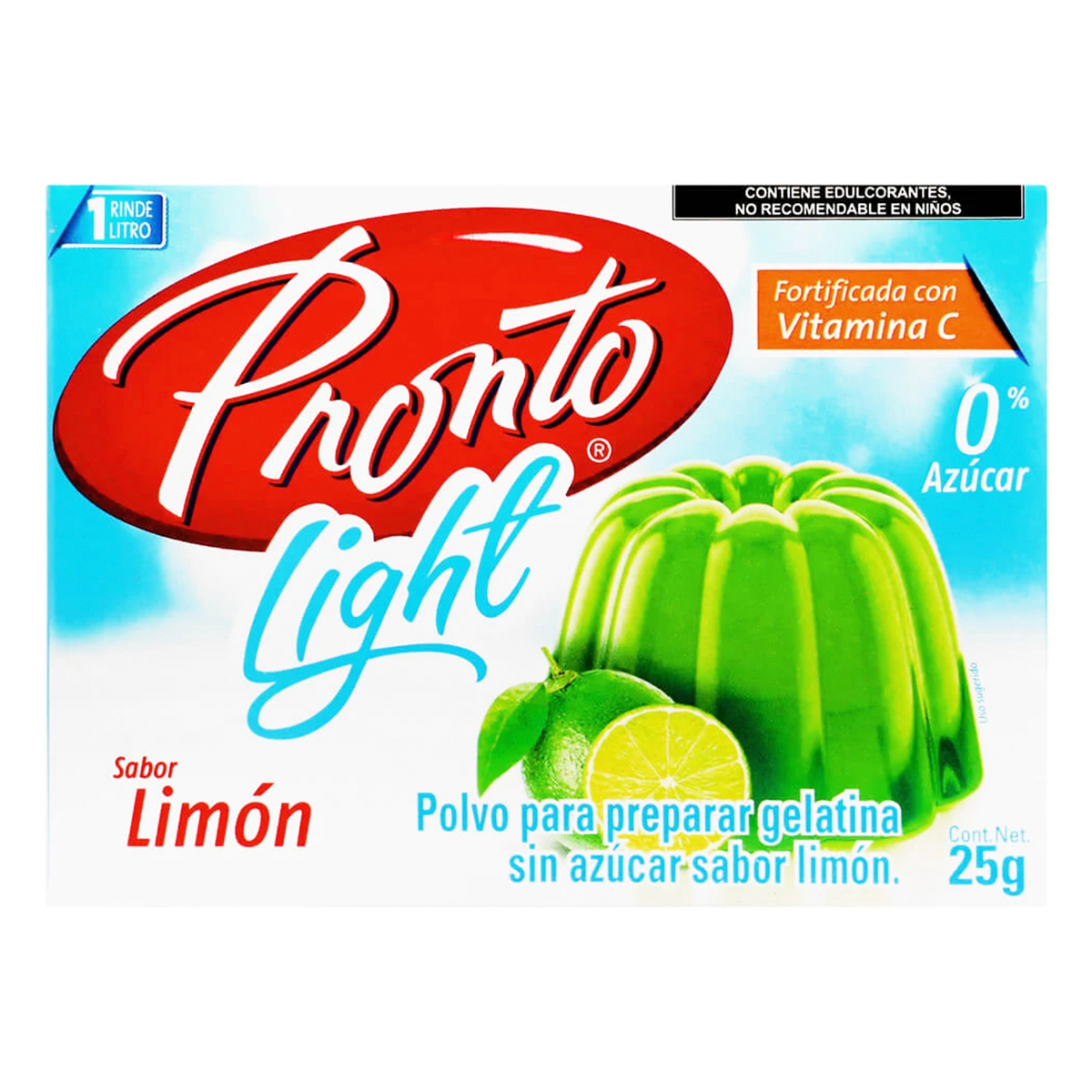 Gelatina Pronto De Limón Ligth, En Una Presentación De 25 Gramos, La Ideal Para Darle Esa Alegría A Tus Días Disfruta De Su Rico Sabor Es La Indicada Para Acompañar De Tus Momentos Especiales Con Tu Familia
