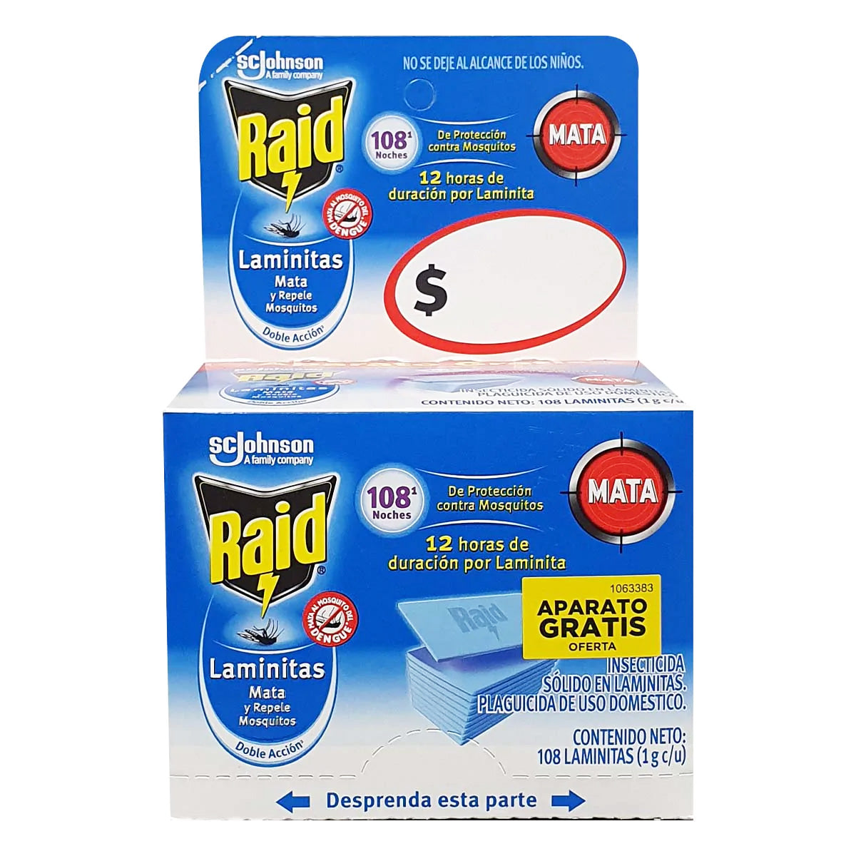 Repelente Sc Johnson, Raid Laminitas, Presentación De 108 Piezas, Más Aparato Para Laminitas. Ideal Para Cualquier Momento Del Día. Protégete A Ti Y A Tu Familia. Retira La Laminita Después De 12 Horas.