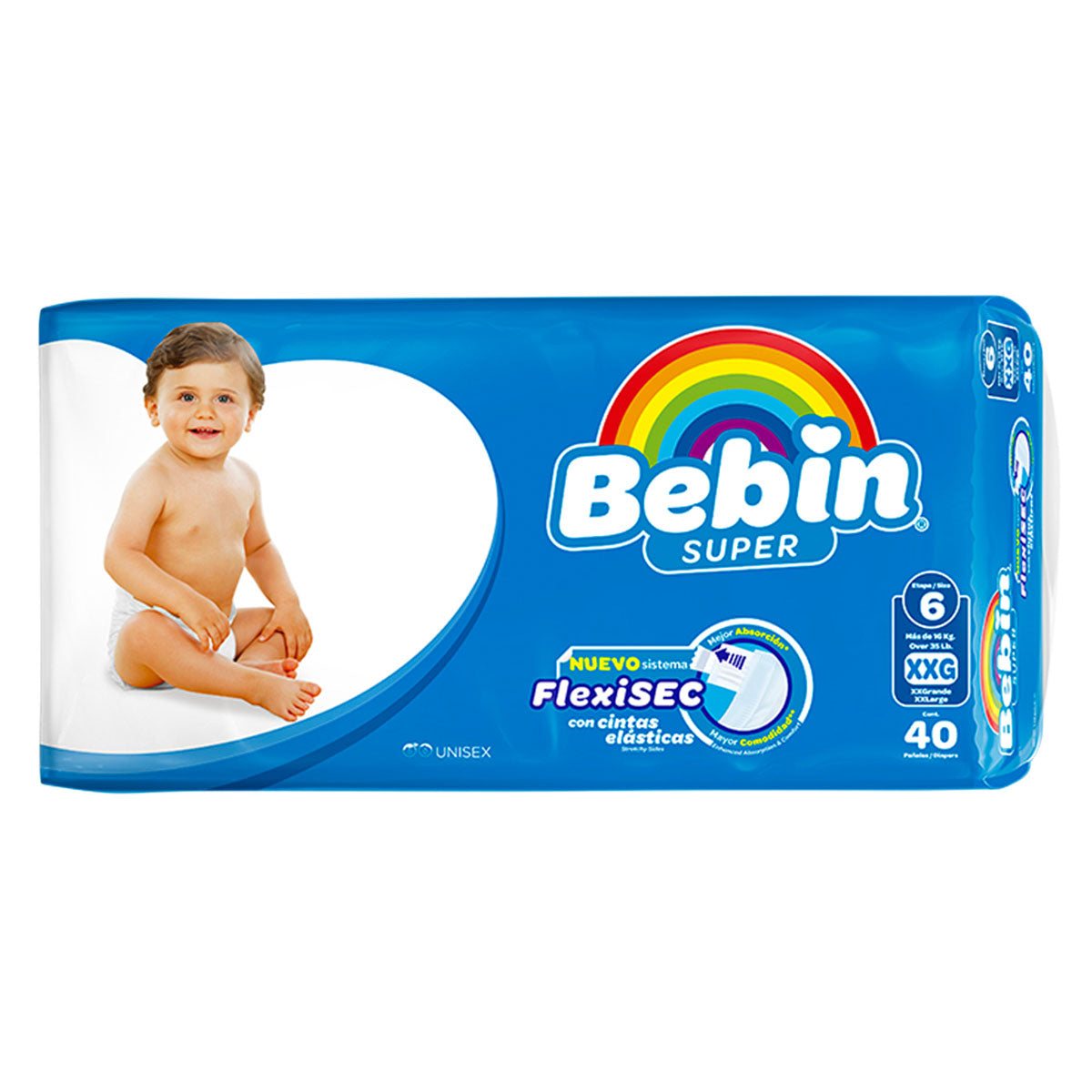 Pañales Bebin Súper Xxg, De 40 Piezas, Comodidad Y Movilidad Con Aloe Vera, Manzanilla Y Vitamina E, De Uso Fácil