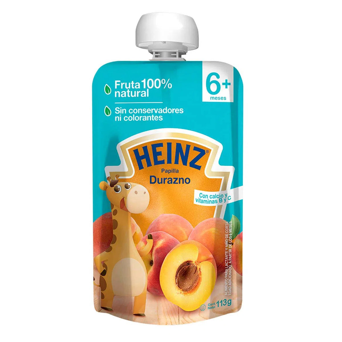 Papilla Heinz Durazno En Doy Pack Una Presentacion Única De 113 Gramos, Hecha Con Ingredientes Naturales. Ideal Para Bebés A Partir De 6 Meses.