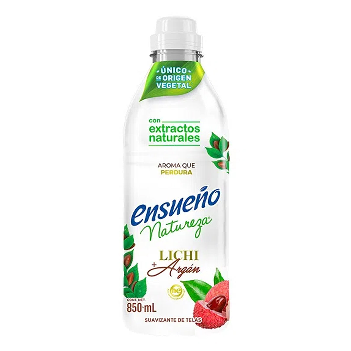 Suavizante Ensueño Naturaleza, Lichi Y Argán. De 850 Mililitros. Suavidad Que Se Siente. Aroma Que Perdura. Con Extractos Naturales.