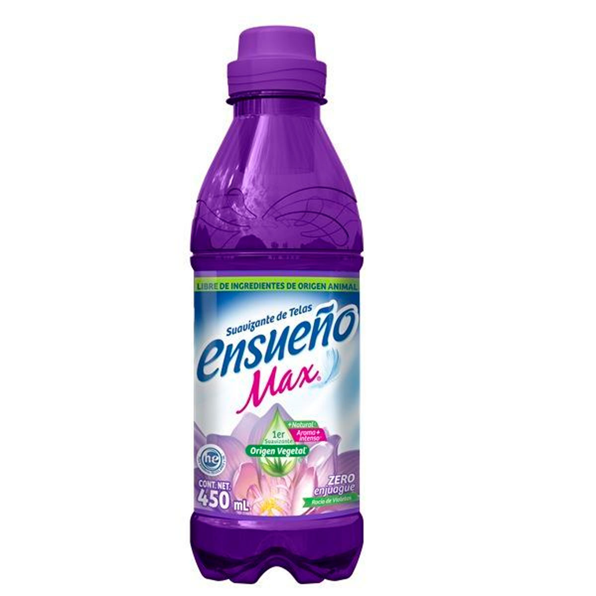 Suavizante. Ensueño. Max. Rocío De Violetas. De 450 Mililitros. Suavidad Que Se Siente. Más Natural Y Con Aroma Más Intenso.