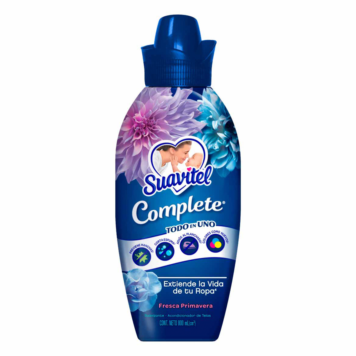 Suavizante Suavitel Complete, Fresca Primavera. De 800 Mililitros. Fragancia Irresistible. Previene Manchas Y Corta Espuma.