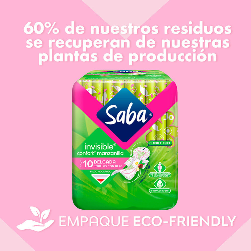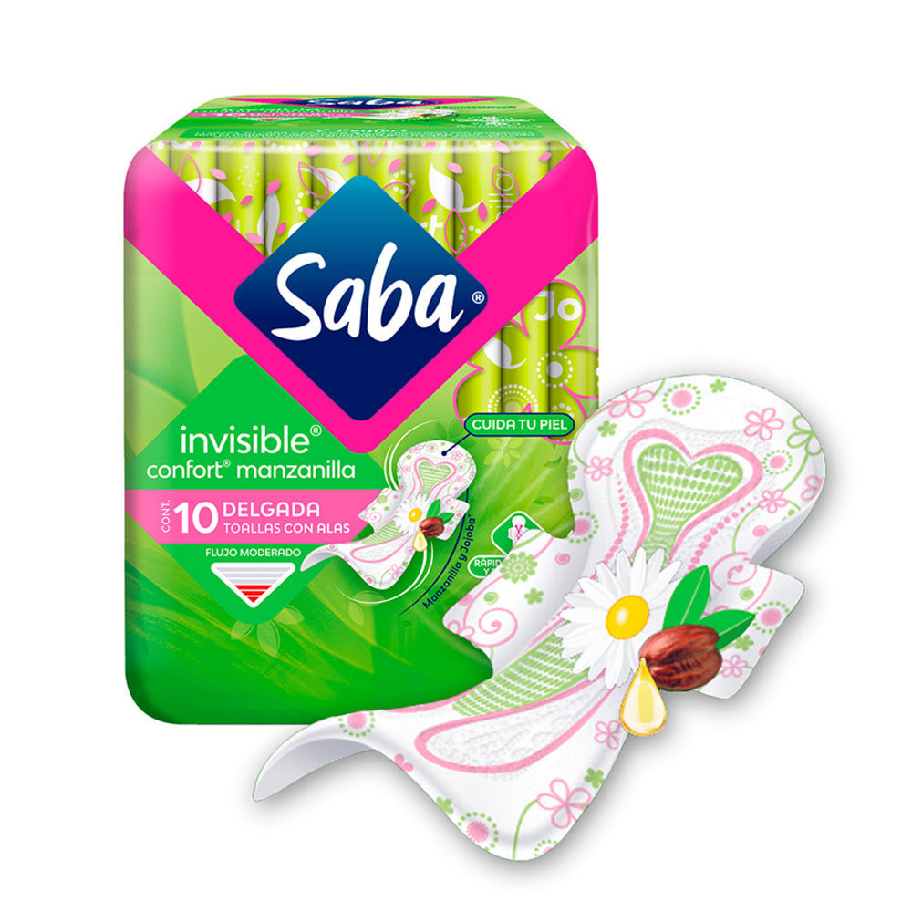 Toallas Femeninas Saba Confort Delgada con Alas 10 piezas