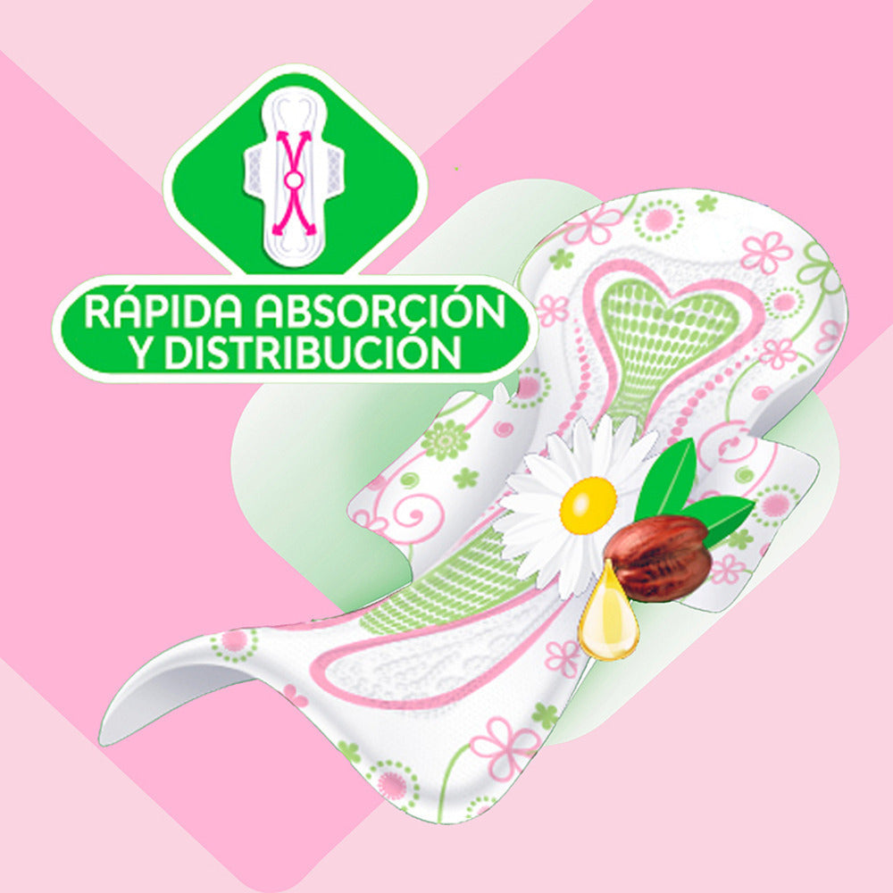 Nuestra toalla +protección-V con extractos de salvia y té blanco lo absorbe todo, protegiéndote de malos olores durante 24 horas, todo para mantenerte protegida todo el día.